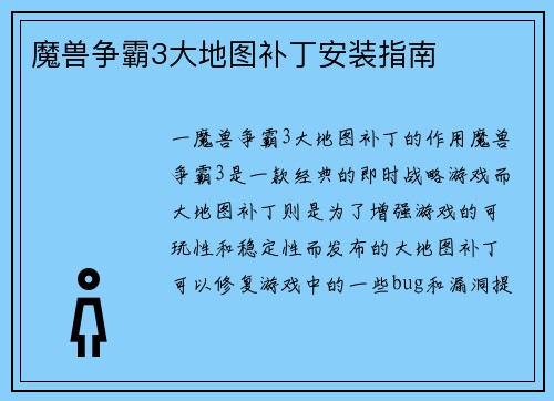 一、魔兽争霸3大地图补丁的作用 魔兽争霸3是一款经典的即时战略游戏,而大地图补丁则是为了增强游戏的可玩性和稳定性而发布的。大地图补丁可以修复游戏中的一些bug和漏洞,提升游戏的画面效果和音效,增加新的...