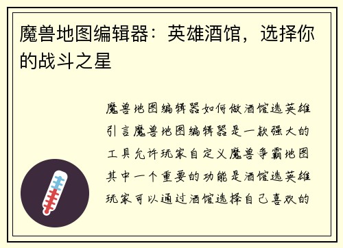 魔兽地图编辑器如何做酒馆选英雄 引言: 魔兽地图编辑器是一款强大的工具,允许玩家自定义魔兽争霸地图。其中一个重要的功能是酒馆选英雄,玩家可以通过酒馆选择自己喜欢的英雄来进行游戏。本文将详细介绍魔兽地图...